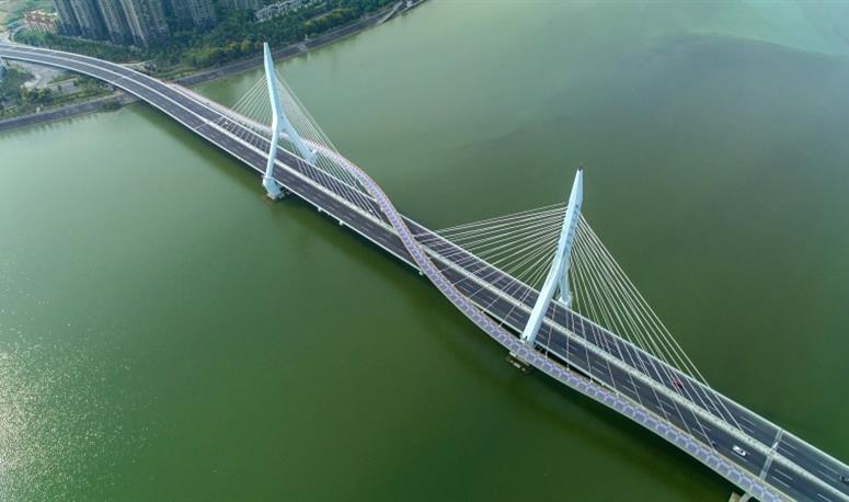 城南新區(qū)一號(hào)橋建成通車,有效地優(yōu)化和改善了綿陽南區(qū)的交通結(jié)構(gòu),極大地緩解了中心城區(qū)的交通壓力,從城東游仙區(qū)到城南新區(qū)不再繞行主城區(qū),城東到城南將縮短5公里左右的路程。大橋在人行層飛架橋面上方,形成并不規(guī)則的“S”形,為全漂浮體系,建設(shè)技術(shù)居世界領(lǐng)先地位。
