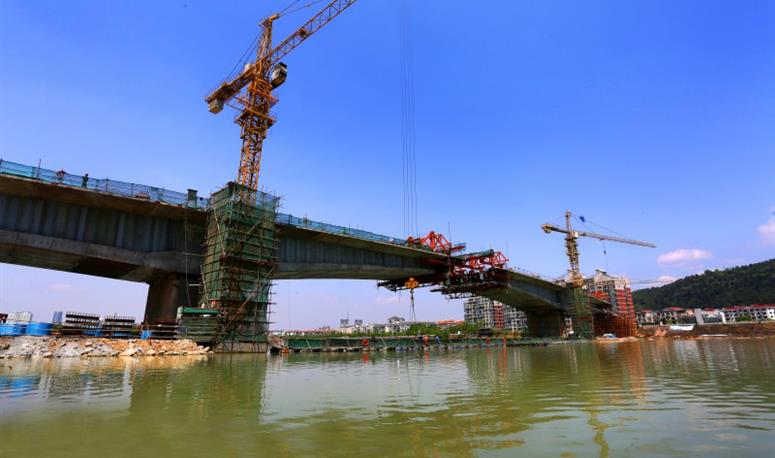 虹云橋連接桃花島和沈家壩片區(qū),為城南新區(qū)規(guī)劃的配套項(xiàng)目,起于桃花島,上跨涪江、芙蓉路,終點(diǎn)接綿鹽路,橋梁全長497米,其中主橋設(shè)計(jì)為83米+110米+83米三跨波形鋼腹板連續(xù)梁,橋梁寬度18米,設(shè)計(jì)行車時(shí)速20公里。項(xiàng)目建成后將加強(qiáng)城南片區(qū)與沈家壩片區(qū)的交通聯(lián)系,改善桃花島片區(qū)的出行條件,緩解涪江三橋的交通壓力。
