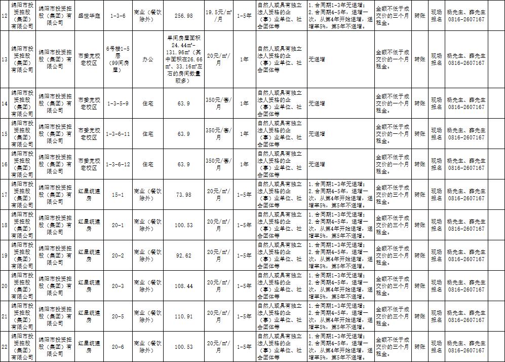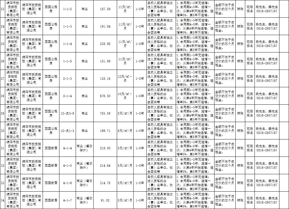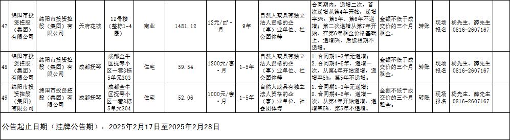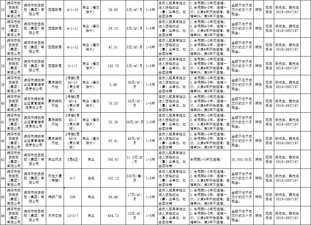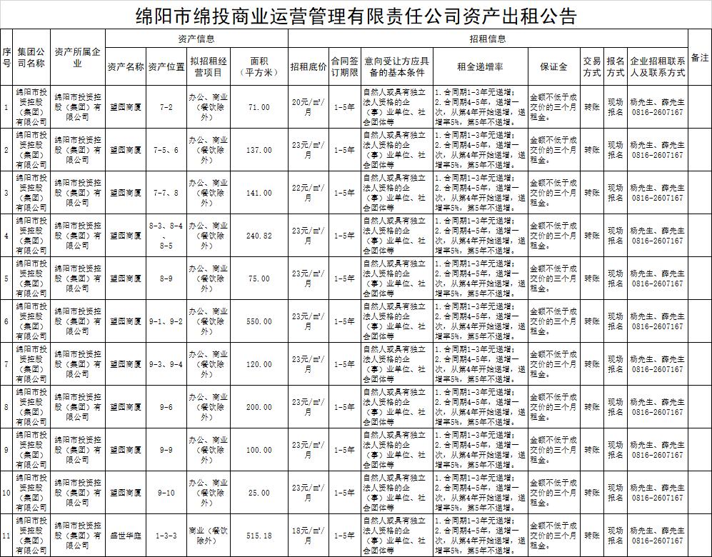 綿陽市綿投商業(yè)運(yùn)營管理有限責(zé)任公司資產(chǎn)出租公告
