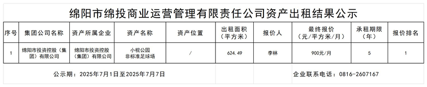 綿陽市綿投商業(yè)運營管理有限責(zé)任公司資產(chǎn)出租結(jié)果公示