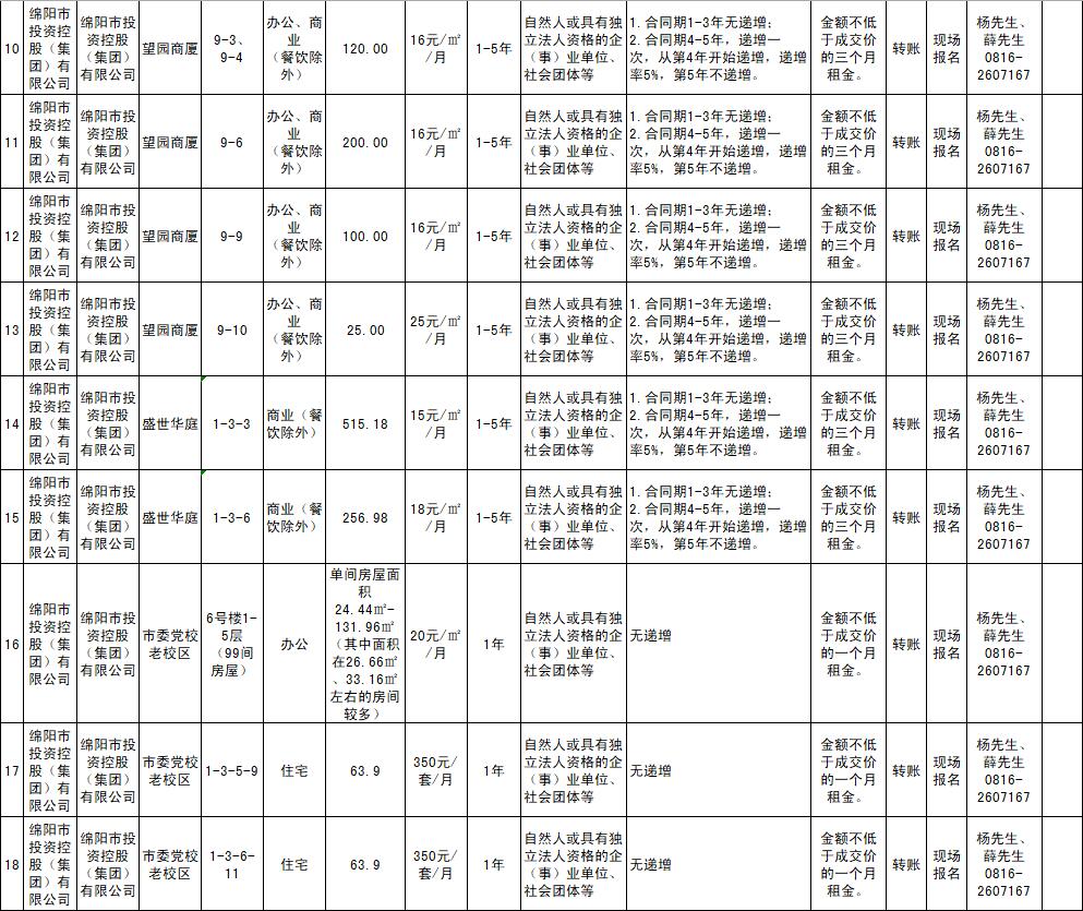 綿陽市綿投商業(yè)運營管理有限責(zé)任公司資產(chǎn)出租公告