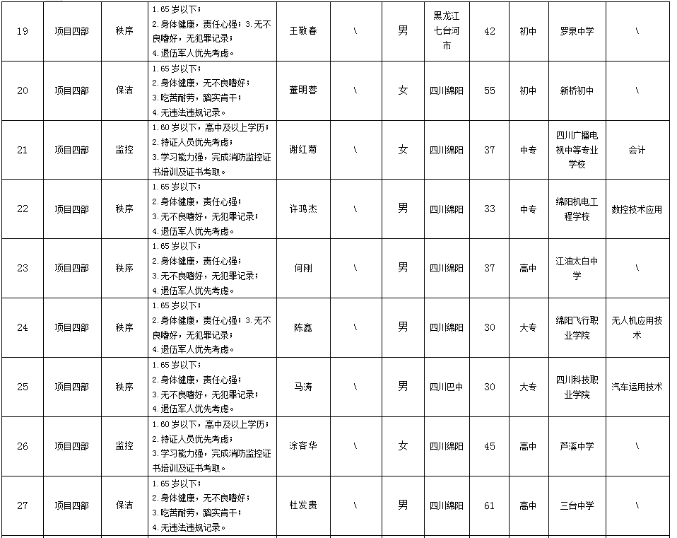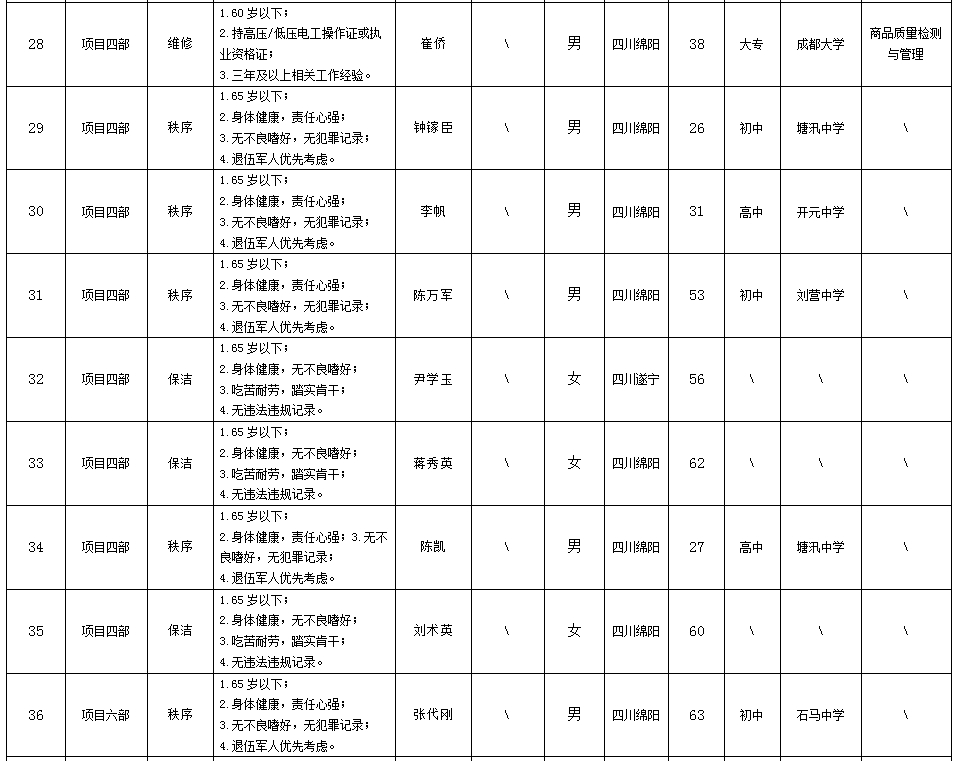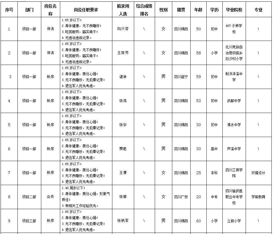 根據(jù)綿陽(yáng)市康來(lái)物業(yè)服務(wù)有限公司發(fā)布的招聘公告及招聘相關(guān)規(guī)定,經(jīng)面試等程序,擬錄用向興容等同志到各項(xiàng)目部工作,現(xiàn)予以公示,具體情況如下: