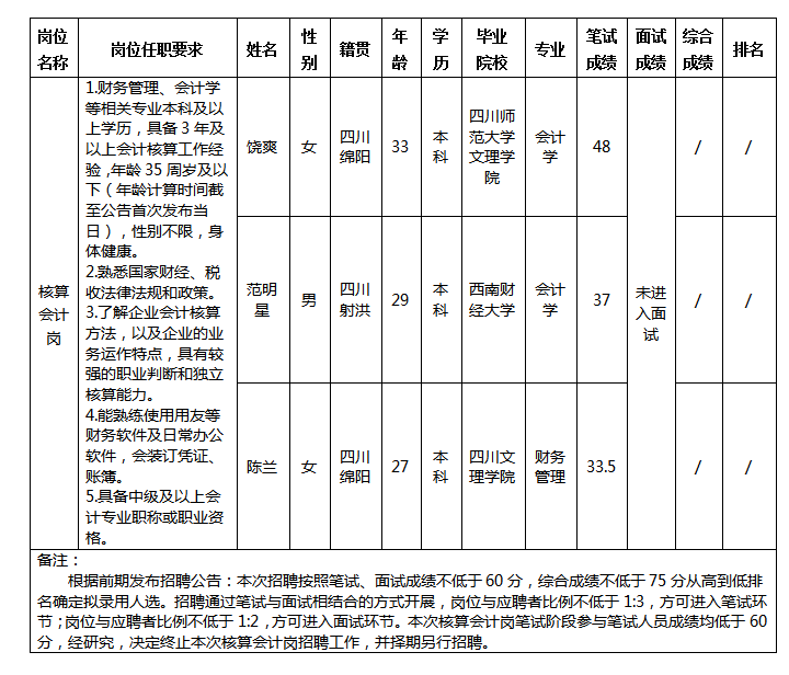 【公開招聘】四川西津物流有限責任公司 關(guān)于招聘核算會計崗位測試成績的公示