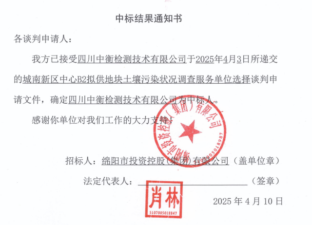 城南新區(qū)中心B2擬供地塊土壤污染狀況調(diào)查服務(wù)單位選擇中標結(jié)果通知書