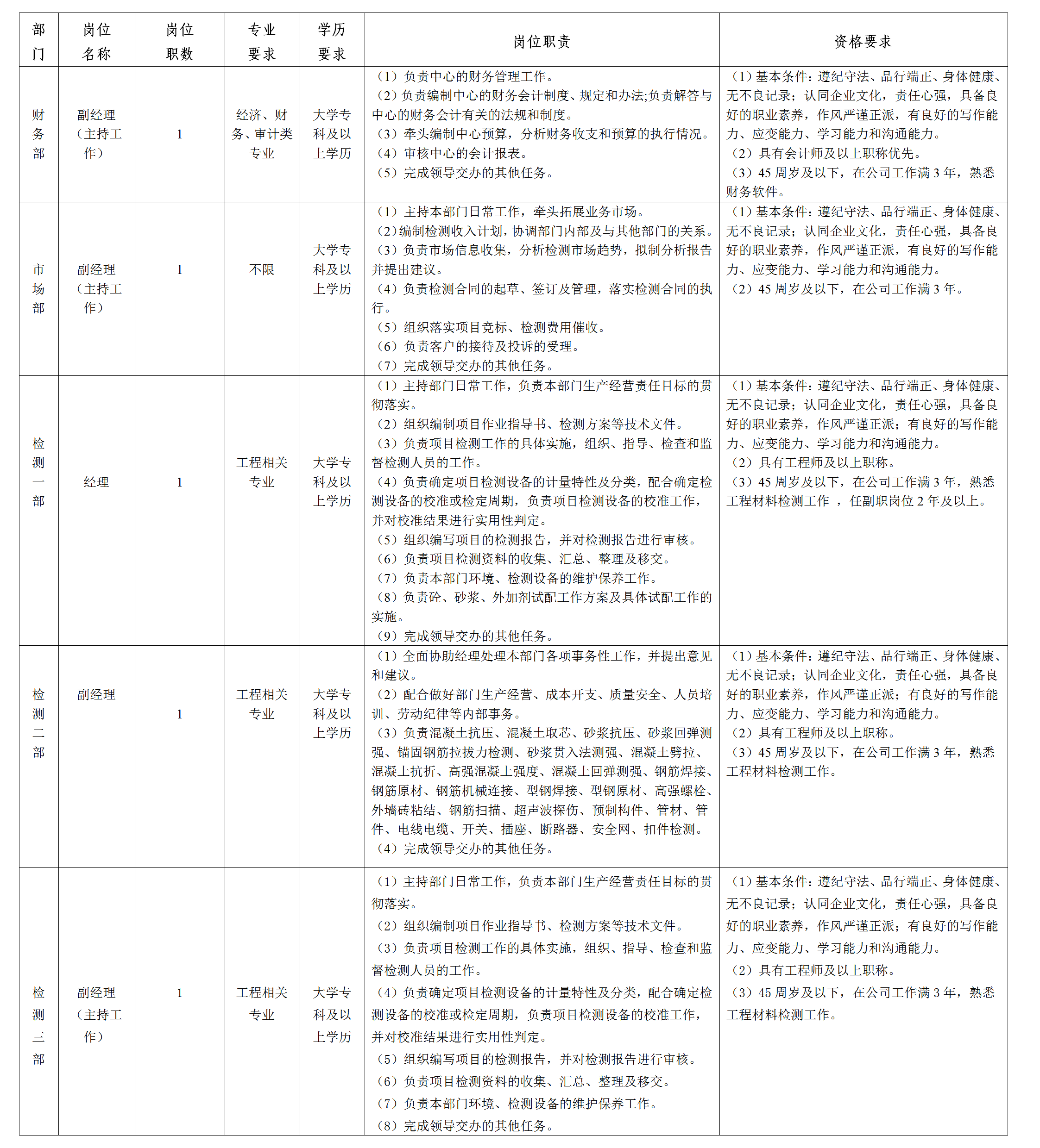 《綿陽市建設工程質(zhì)量檢測中心有限責任公司關于部門經(jīng)理、副經(jīng)理崗位內(nèi)部競聘的公告》于2026年1月4日向內(nèi)部公開發(fā)布,因競聘崗位與通過資格審查的人數(shù)未達比例,經(jīng)公司研究,決定延長報名時間至2026年2月5日,具體公告如下: