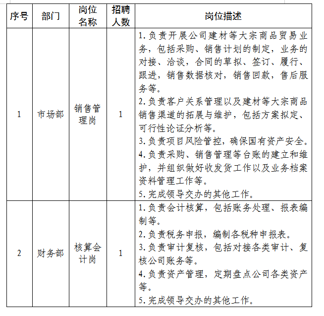 《關于招聘銷售管理崗等崗位的公告》于2025年12月4日面向社會公開發(fā)布,因銷售管理崗、核算會計崗參與測試人數(shù)分別未達筆試、面試比例,經(jīng)公司研究,決定延長報名時間至2026年3月6日,具體公告如下: